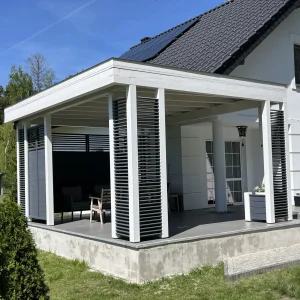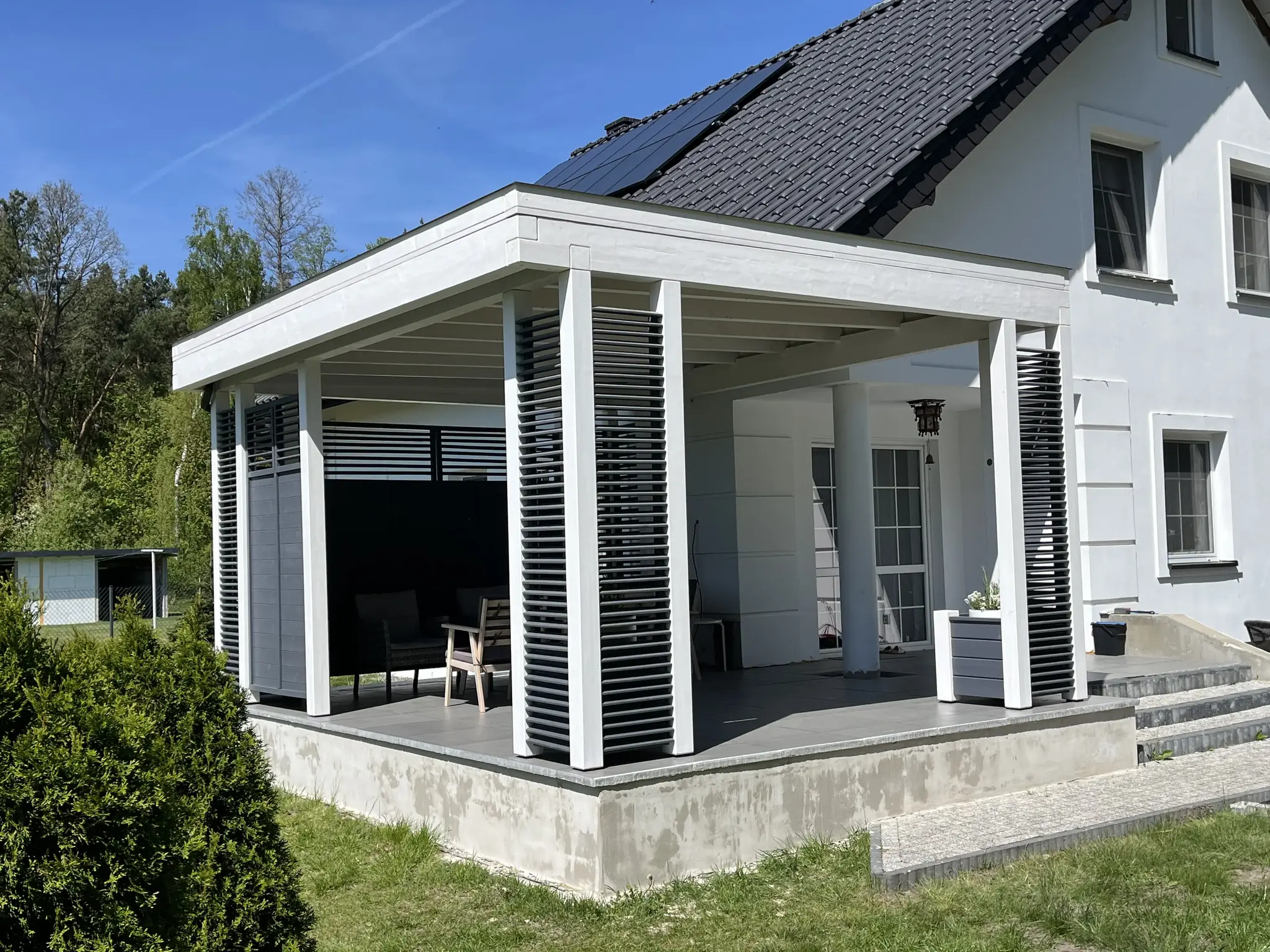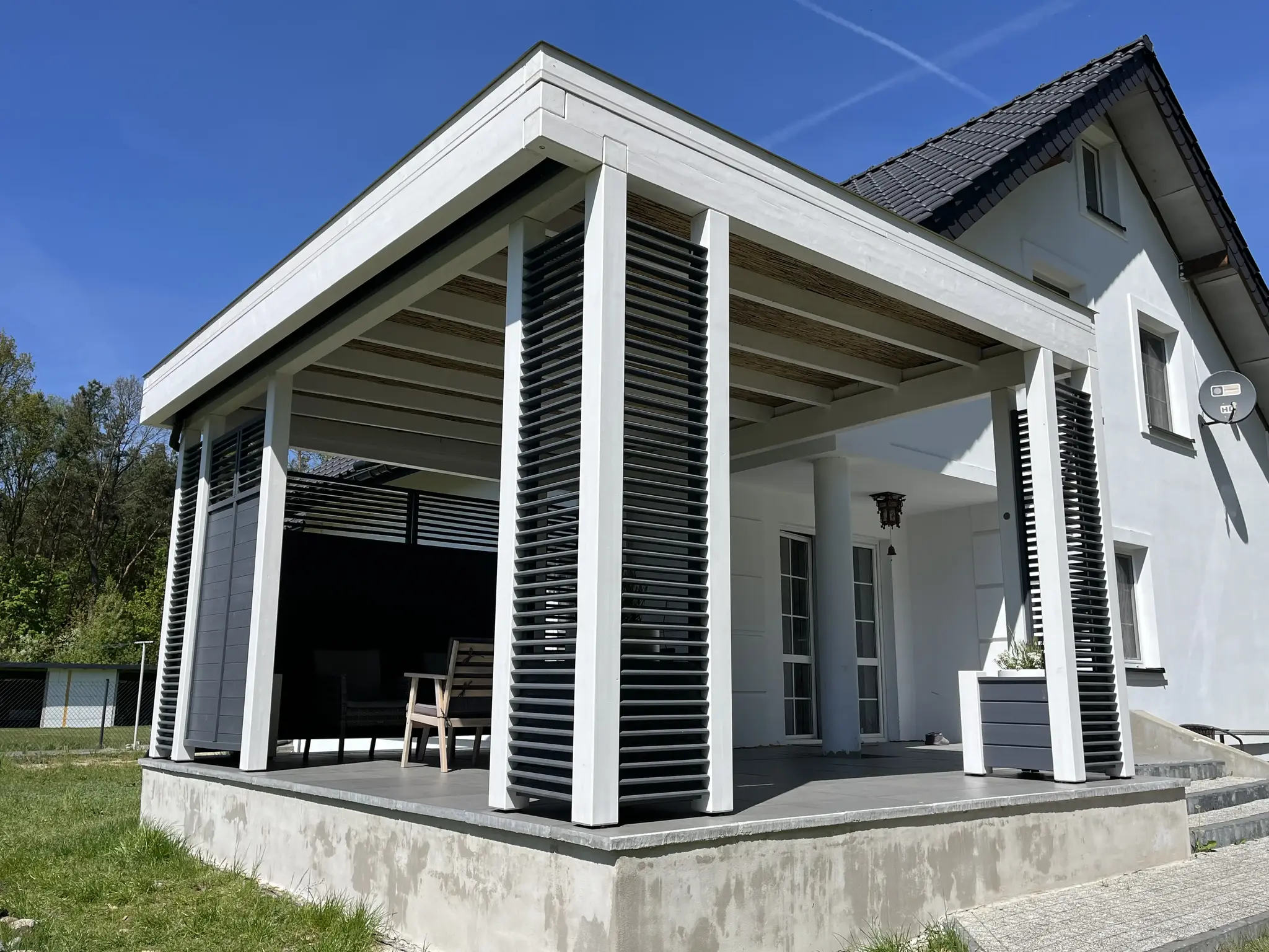 Nasze realizacje obejmują nie tylko tarasy, ale też pergole, wiaty samochodowe, zadaszenia pod fotowoltaikę czy altany. Każde zadaszenie projektujemy indywidualnie, zgodnie z wymaganiami klienta – od koncepcji po montaż. Zapewniamy pełne wsparcie na każdym etapie.
