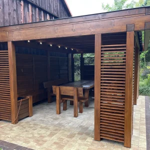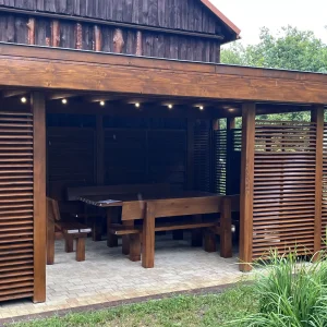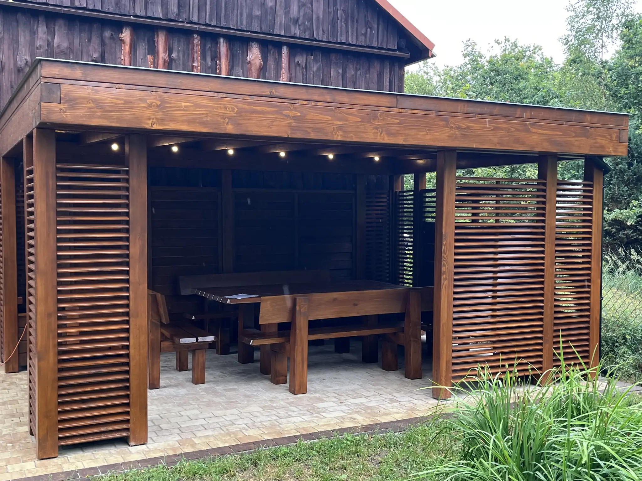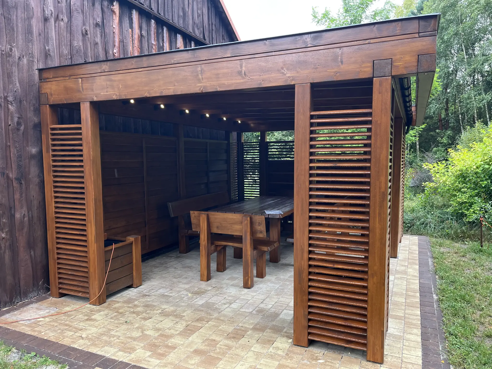 Oferujemy zadaszenia wykonane z wysokiej jakości drewna klejonego BSH, sosnowego oraz świerkowego. Stosujemy solidne elementy nośne i sprawdzone pokrycia dachowe – najczęściej z poliwęglanu komorowego lub litego, który przepuszcza światło i jednocześnie chroni przed opadami.