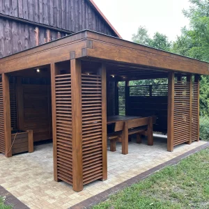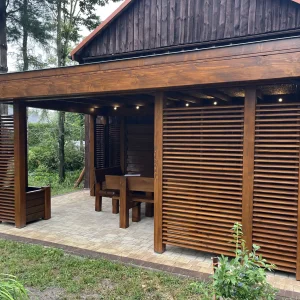 Zadaszenie tarasu drewniane to idealne rozwiązanie dla osób, które nie mają miejsca na altanę ogrodową, ale chcą korzystać z przestrzeni wypoczynkowej niezależnie od pogody. Drewniane konstrukcje są estetyczne, trwałe i w pełni funkcjonalne – chronią przed deszczem, słońcem i wiatrem, a przy tym pięknie komponują się z ogrodem.